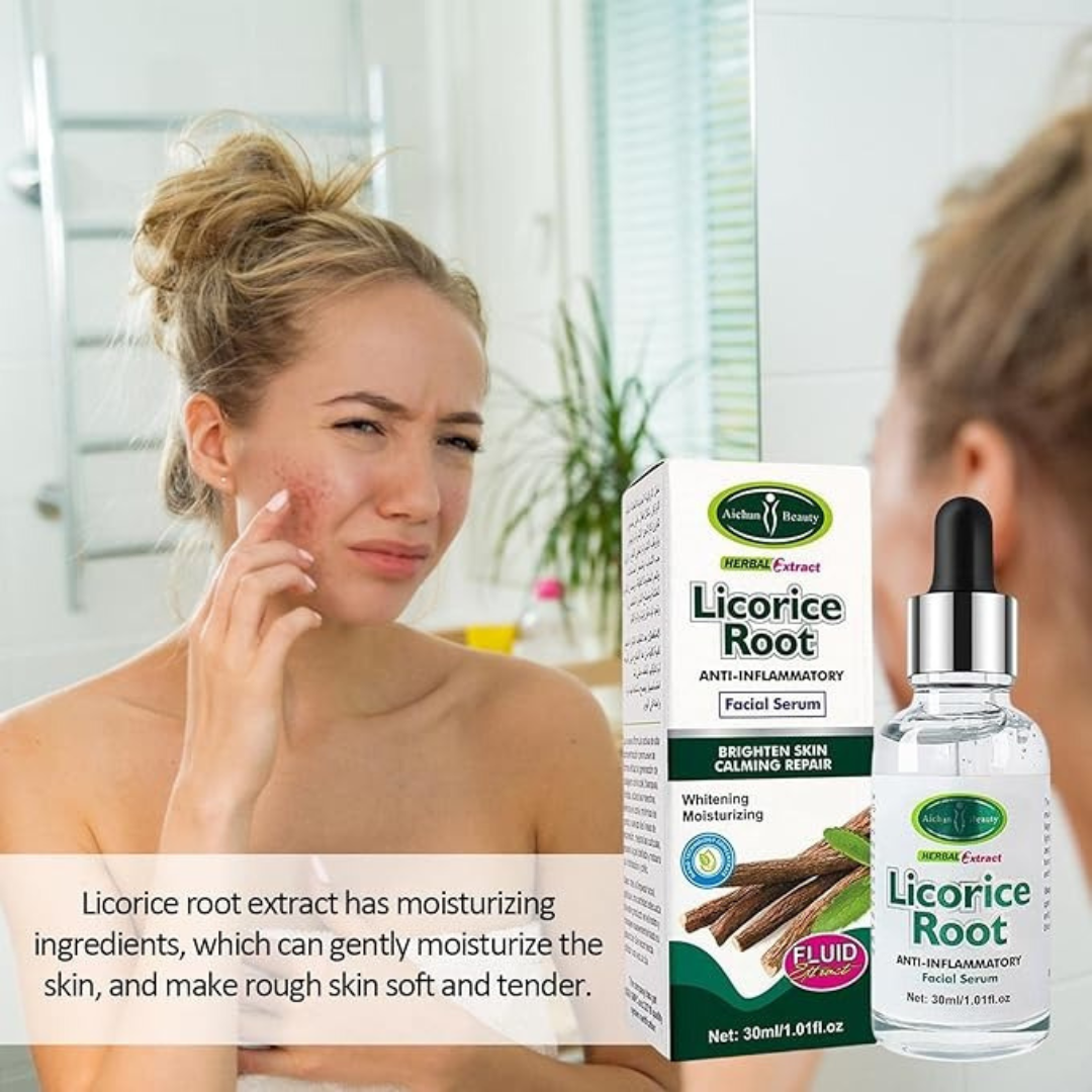 Aichun Beauty Herbal Licorice Root Anti-Inflammatory Facial Whitening Serum is a natural skin-brightening formula enriched with the power of licorice root extract. Known for its anti-inflammatory and skin-soothing properties, this serum helps reduce dark spots, pigmentation, and redness while promoting an even, radiant complexion. Its herbal ingredients nourish the skin deeply, leaving it smooth, luminous, and refreshed.