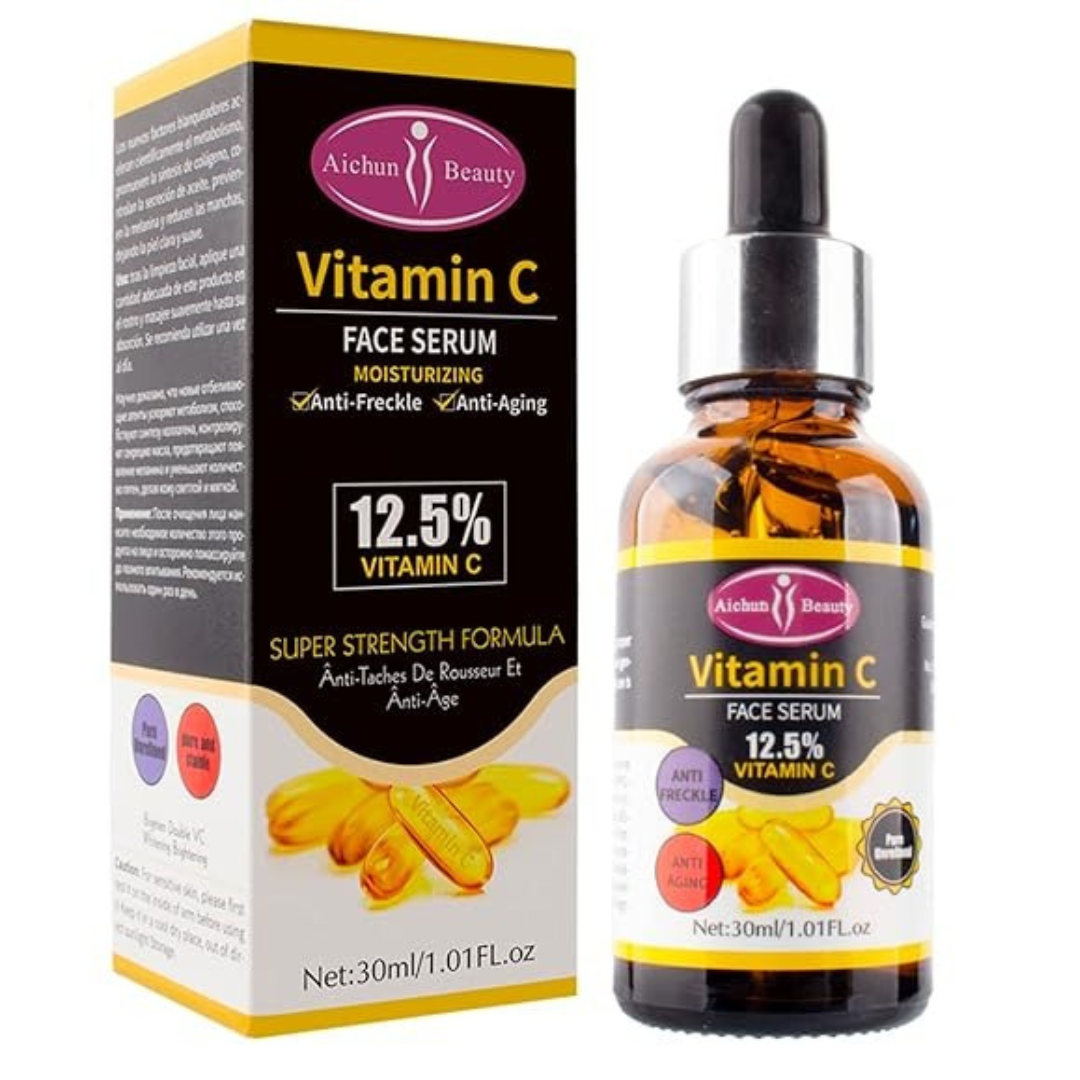 Aichun Beauty Vitamin C Face Serum is a lightweight, fast-absorbing serum designed to brighten and refresh dull skin. Infused with Vitamin C and other antioxidants, it helps even out skin tone, reduce the appearance of dark spots, and promote a smoother, more radiant complexion. Its non-greasy formula is suitable for most skin types and can be used under makeup or on its own.
