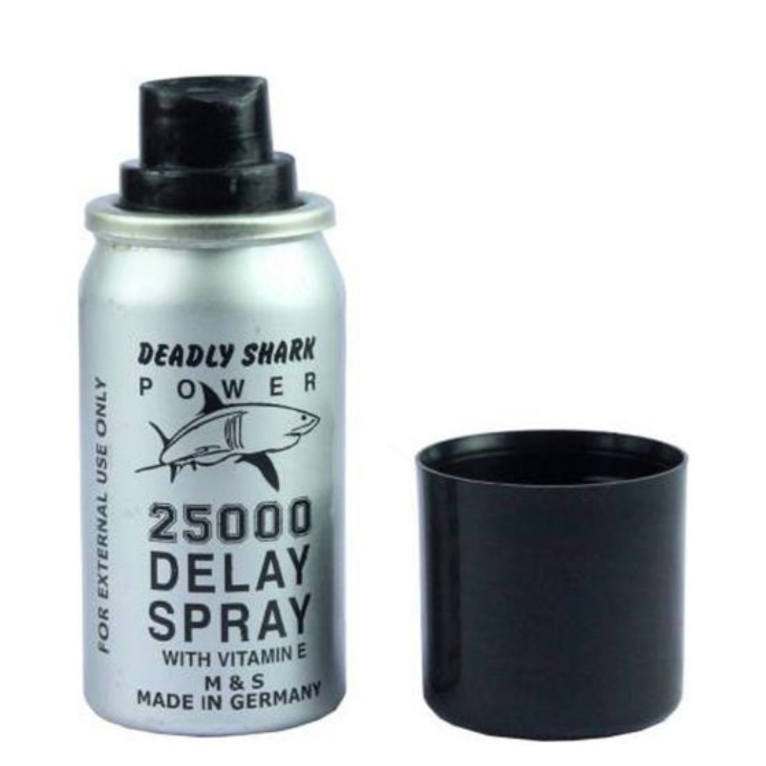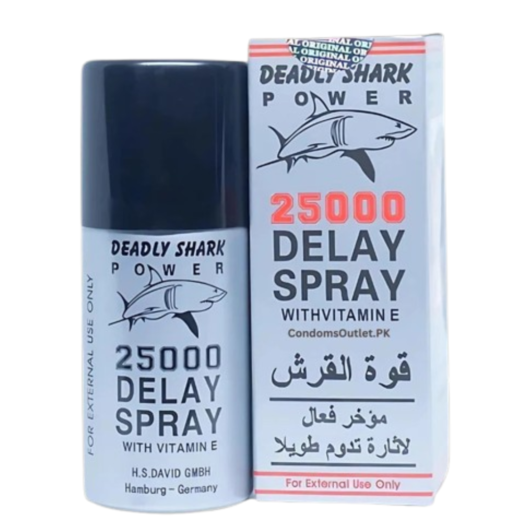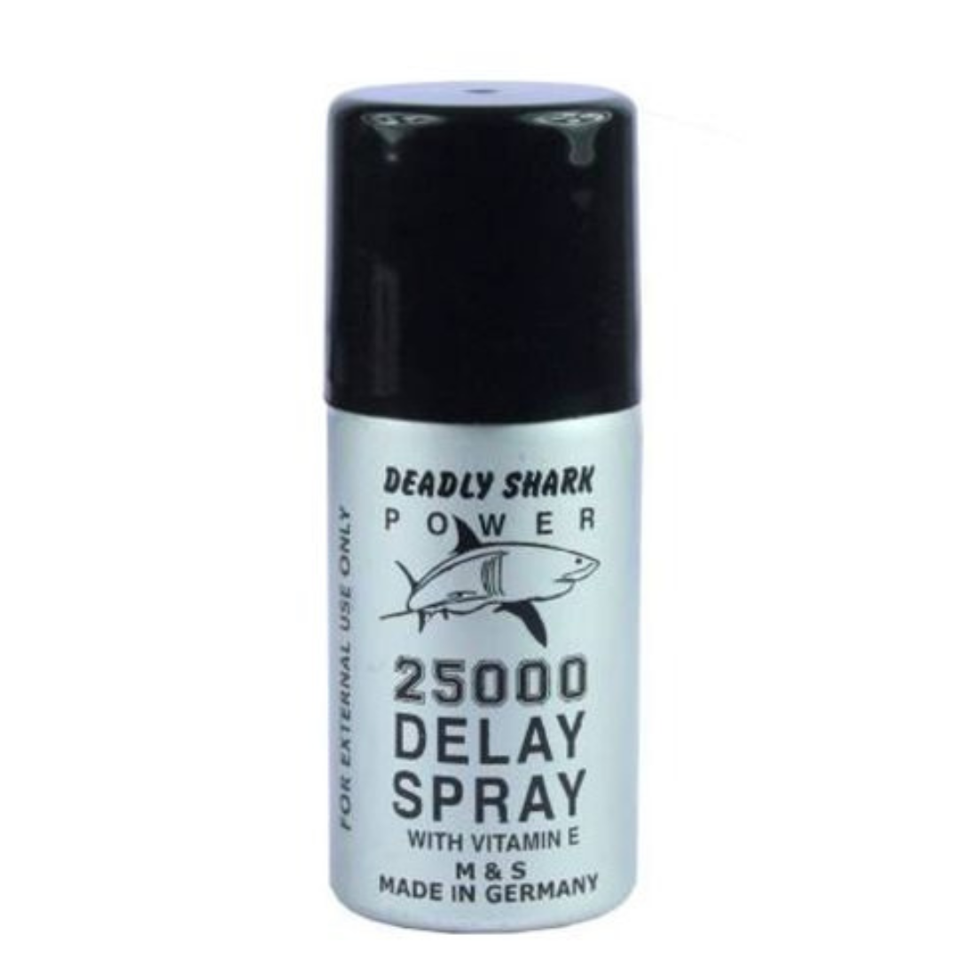Deadly Shark 25000 Delay Spray is specially formulated for men to help improve stamina and prolong intimate moments. Infused with mild numbing ingredients, it reduces oversensitivity without compromising sensation, giving you more control and confidence. Its discreet, easy-to-use spray bottle makes application quick and hygienic.