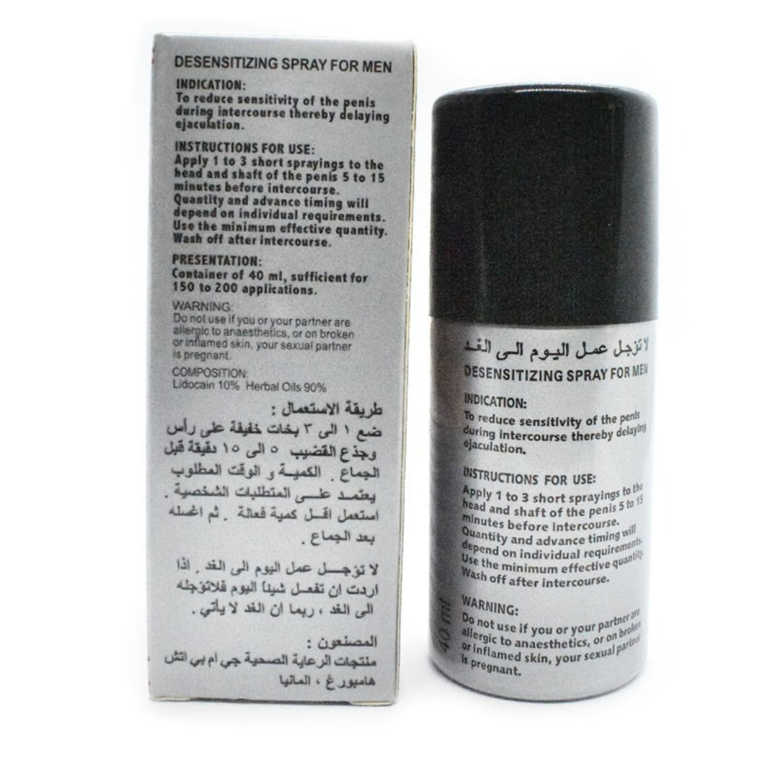 Shake well before use. Spray 2–3 times directly on the intimate area about 5–10 minutes before intercourse. Allow it to absorb fully before contact.