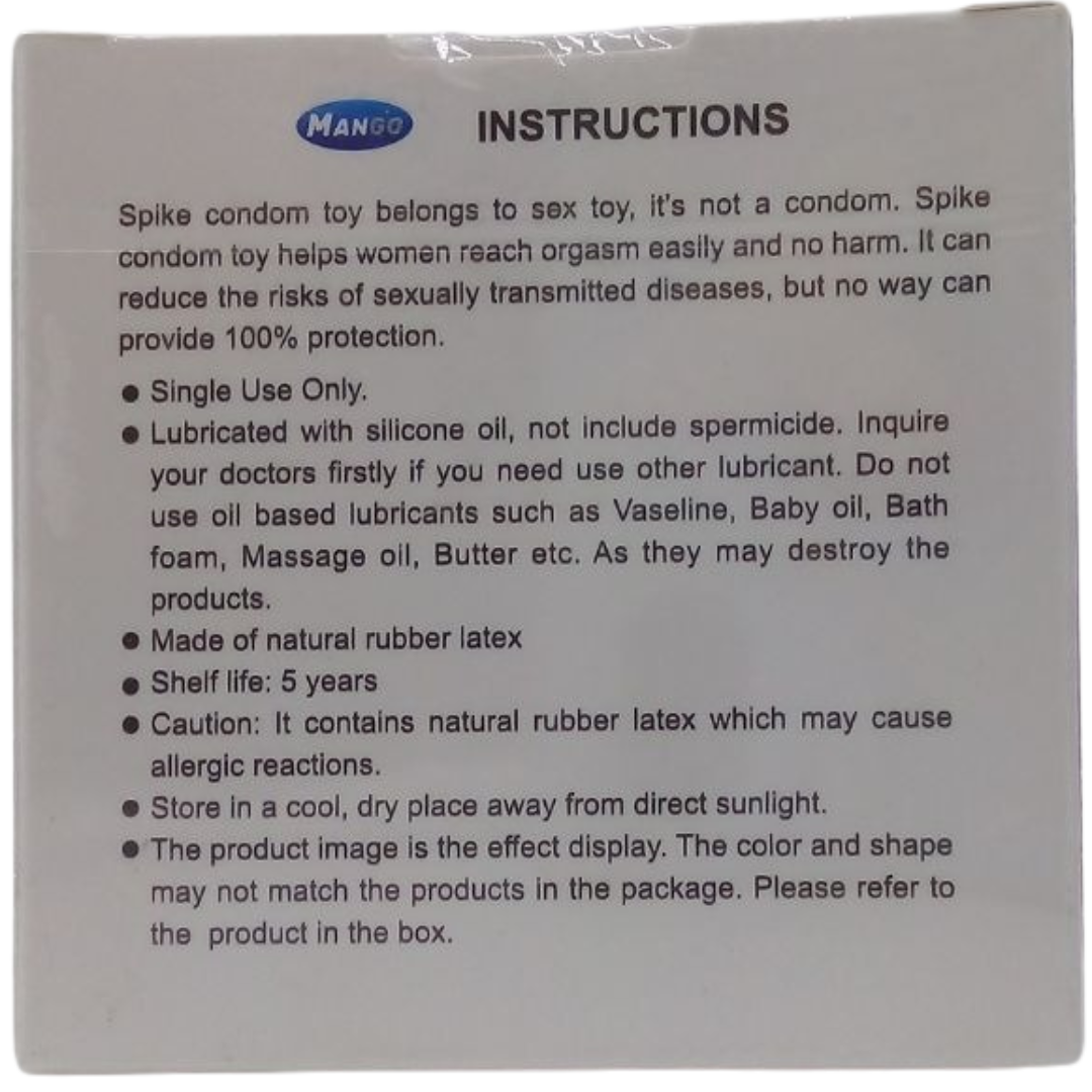 Add excitement and a bold new experience to your intimate moments with Mango Novelty Spike Condoms. Designed with textured spikes for heightened pleasure, this novelty condom is ideal for couples looking to explore enhanced sensations and break away from the ordinary.